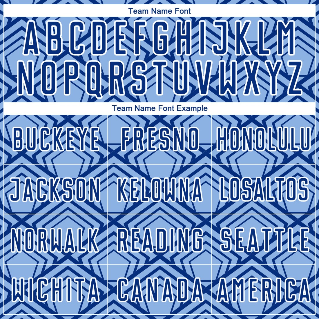 Custom Light Blue Royal-White Geometric Pattern Sublimation Soccer Uniform Jersey